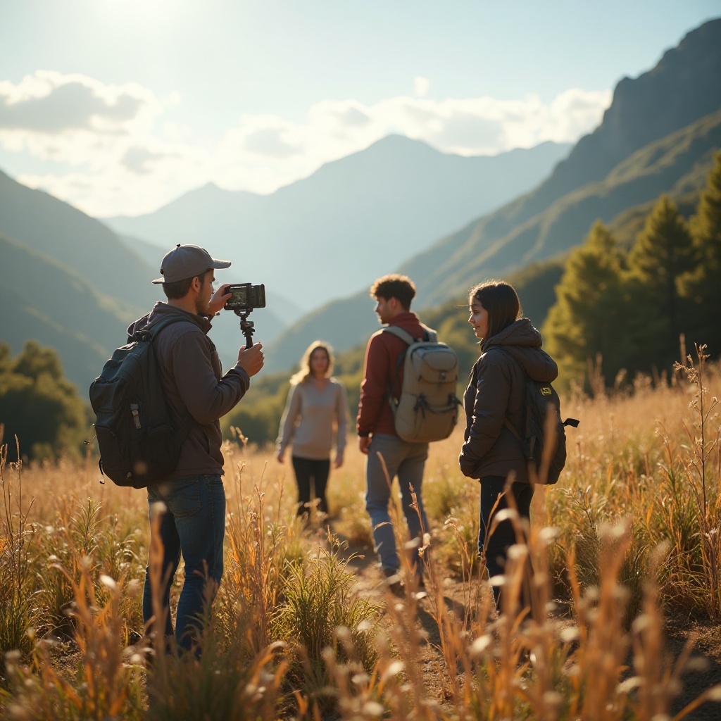 "Golden hour sunset over mountain peaks,